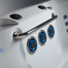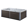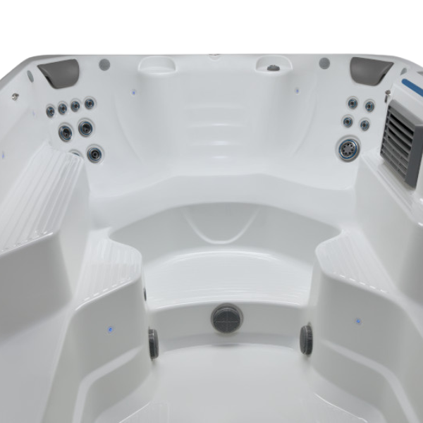R220 รคr utrustad med tvรฅ lรฅnga sittbรคnkar lรคngs sidorna och fem ergonomiskt formade sรคten baktill. De 31 strategiskt placerade hydromassage-jetsen ger en komplett massageupplevelse som lindrar trรถtta muskler och maximerar komforten.Trรคning i Vatten โ Skonsamt men Effektivt